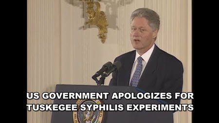 Synopsis: President Clinton acknowledges and apologizes for the program "Tuskegee Study of Untreated Syphilis in the Negro Male." being conducted on Black men by OUR GOVERNMENT without their knowledge or INFORMED CONSENT, during the period of 1932-1972 (40 YEARS). The program left HUNDREDS of black men UNTREATED for syphilis to monitor their progress even though it was widely know Pennicllin could cure it.